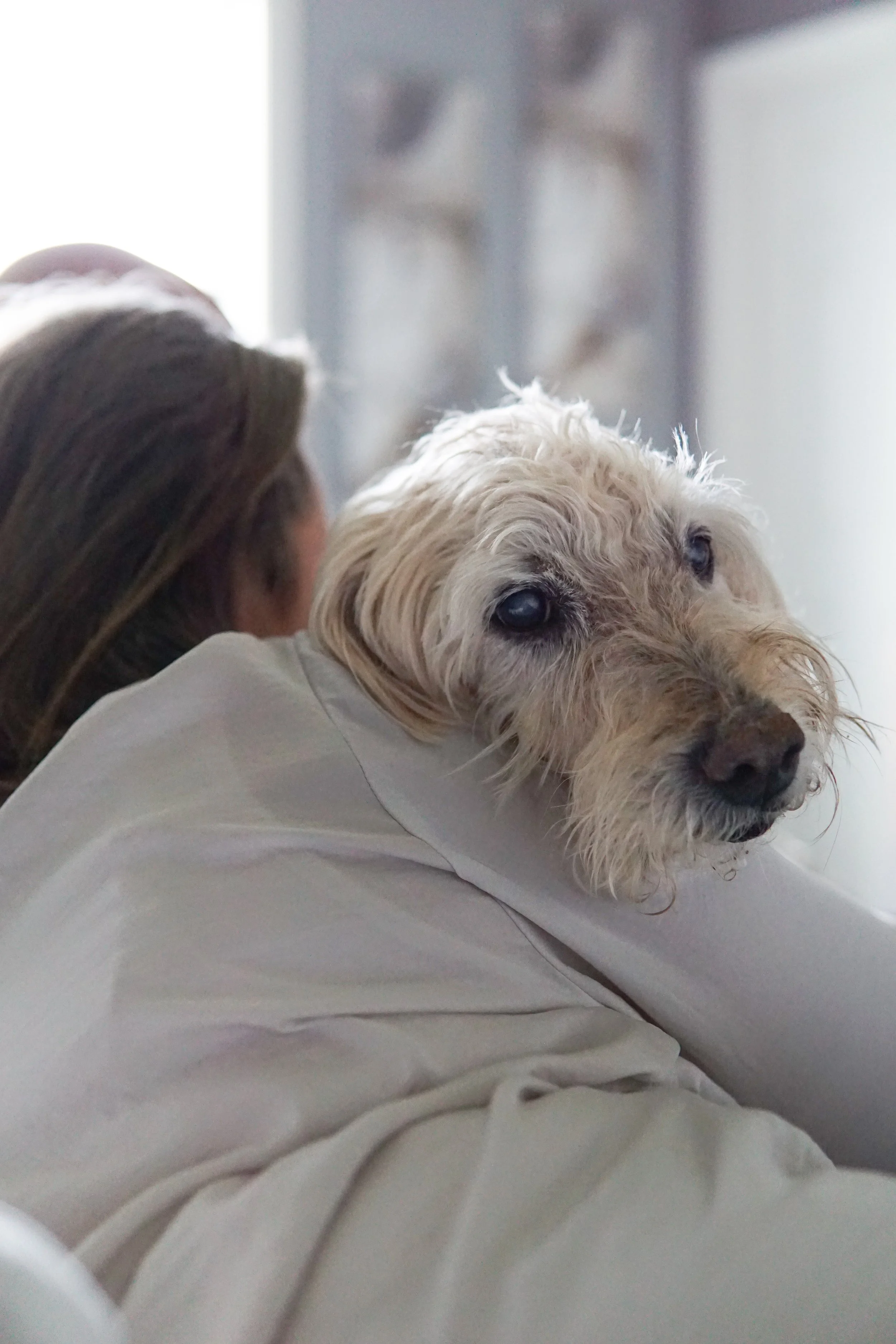 [Briana and Bill adopted Bentley, a mini-goldendoodle, when he was 8 weeks old. At the time of our session, Bentley was 16 years old and suffering from a terminal illness. It was a very difficult and sad time for them. Bentley was a special part of their family so for many years, and his disposition made him so easy to love: gentle, good natured, empathetic, snuggly, smart and well mannered. Though he was slowing down considerably, he still acted like a puppy, had a kick in his step, and continued to engage in his cute and funny antics. Briana + Bill said good-bye to Bentley a few days after our session. They miss him every day, and they will always love Bentley, their very special family member.]